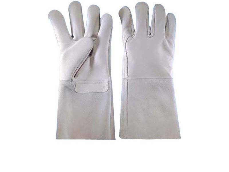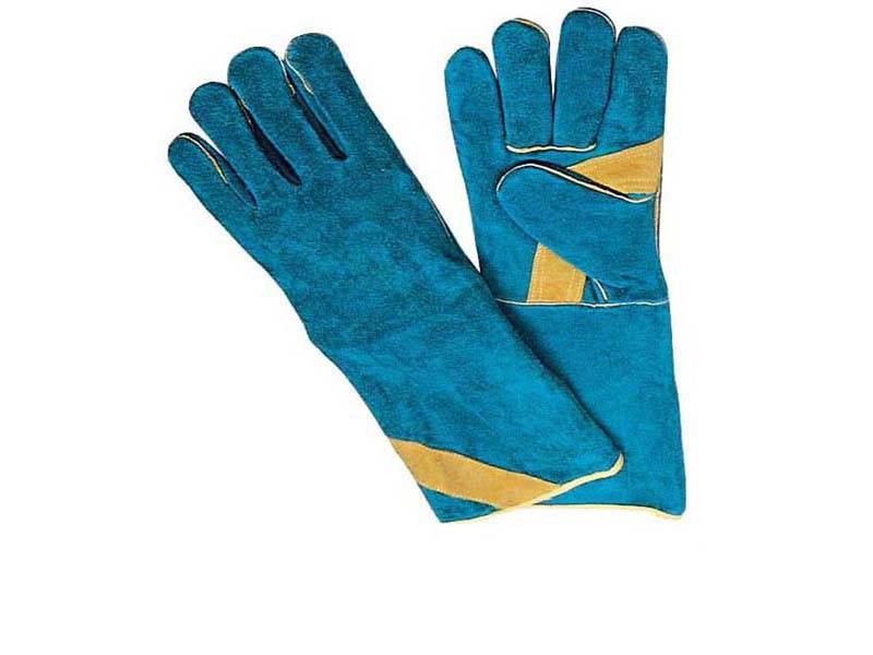 Art.S-012 : 5-Finger welder gloves in natural colour grain leather, split cuff. Total length 28/35/40 cms.