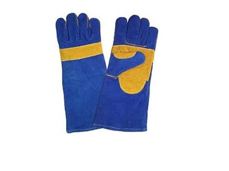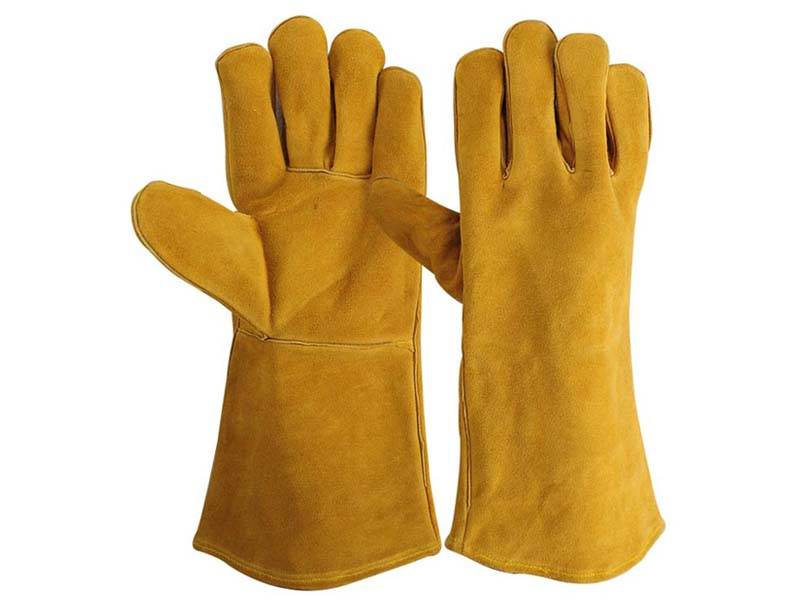Art.S-015 : 5-Finger welder gloves in split leather, re-inforcement on palm, thumb and pulse protection.